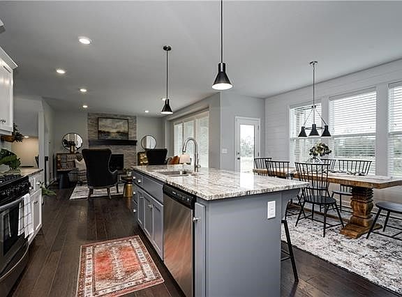 The Palmer 2 story by Award Winning Summit Homes. Completely open living, inviting 2 story foyer, great room, dining room, & kitchen all share the same open space. Chef's kitchen has a massive island with the sink, huge walk-in pantry with window. Boot bench-mudroom right off the 3-car garage. All 4 bedrooms upstairs. Huge master suite and walk in closet. 3 full bedrooms share bath 2 with huge walk-in closets. It has a great feel to this floor plan and has plenty of upgrades that the decorators selected. Covered patio on the large corner home-site.The community offers residents a new clubhouse, 3 swimming pools with covered cabanas, 3 community playgrounds and a sand volleyball court. The community is located adjacent to Osage Trails Park, offering residents access to additional walking trails, picnic areas, and a playground. This family-oriented community is within the Lee's Summit West school district and provides the best of what Lee's Summit has to offer. The Manor at Stoney Creek features sixteen distinctive floor plans, each with multiple innovative front elevation options to choose from. Base prices in the Manor at Stoney Creek include the lot price. The community is just a few minutes' drive from the charming downtown Lee's Summit shopping district, three superior golf courses, and scenic hiking, fishing, boating, and camping at both Longview Lake and James A. Reed Memorial Wildlife area. Manor at Stoney Creek is the only place where you will find a variety of floor plans, with the best amenities at affordable prices. Who do you know that has a resort life every day with 3 swimming pools, 2 play areas, sand volleyball, clubhouse and trash and recycling all for only $450/year. ***Pics are of previous model and are for Ref Only. 2022-06-15