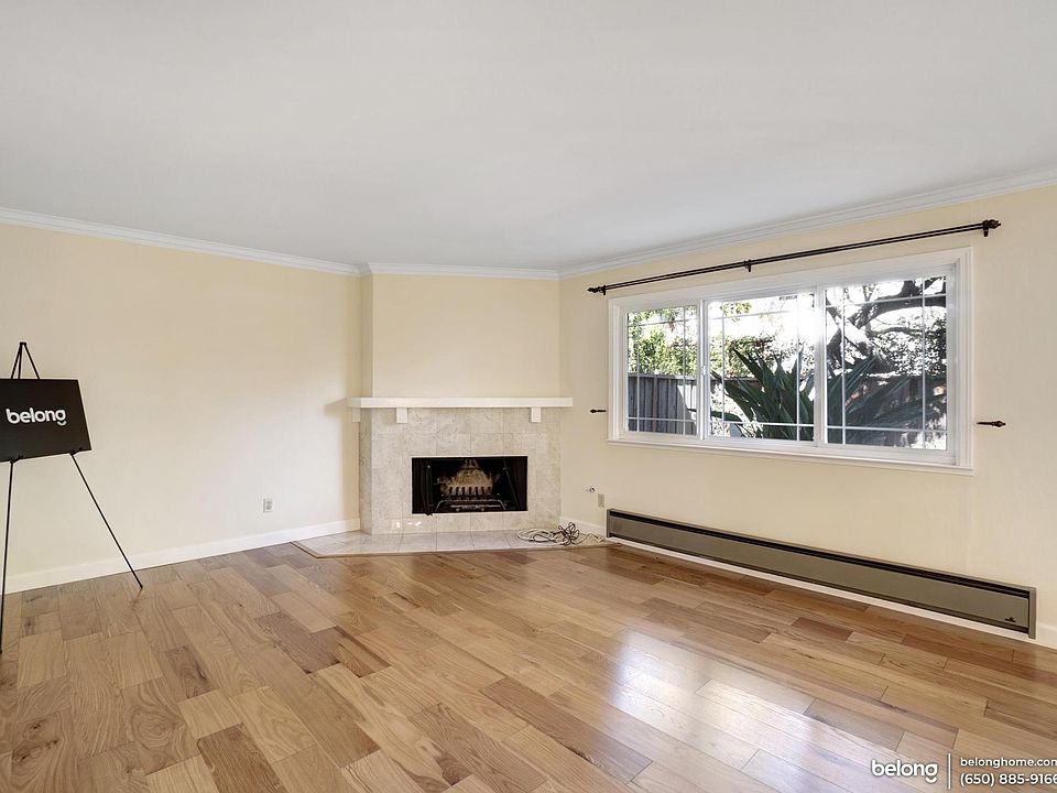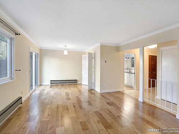 Gorgeous, newly-updated 2-bedroom home in a walkable location now ready to be loved! Unique and meticulously upgraded, this feline-friendly home welcomes you with lots of sunlight through the double-paned windows and new wood flooring in the spacious open living room that looks out onto the beautiful yard. Slide the glass doors open and enjoy al fresco dining in the private patio or lounge with a warm drink by the beautiful gas fireplace! Electric baseboard heaters paired with thermostats in each room provide heating without the expense of heating the entire unit at once. The home also has a water heater, a secure mailbox, and plenty of storage space. The recently-updated full kitchen is filled with natural light that illuminates the generous countertops and white cabinetry. New, matching appliances installed, including a French door refrigerator, oven/range, and microwave. A washer and dryer are available in the 2-car garage to make laundry hassle-free. Upstairs are the relaxing, plushly-carpeted rooms with ample cabinet space, with the master bedroom featuring a walk-in closet, a private balcony, and a quiet ceiling fan. Updated shared ensuite features a sleek dual vanity and an enclosed shower/bathtub combo, made perfect for a relaxing soak at the end of a long day. A door separates the shower over tub and toilet from the vanity and sinks, allowing some privacy while sharing the bathroom between the bedrooms. Your future address is in a good neighborhood in a convenient location close to the Google campus and downtown Mountain View. Grocery stores, parks, and other amenities are within easy walking distance. Perfect for commute - CalTrain, 101, and 85 are all nearby! Welcome to a new kind of rental experience. Welcome to Belong. We are here to make sure you love your new home. To apply for this home and schedule tours, please visit our website! CA DRE License #02082345 Pet Fee: $75/mo. per pet
