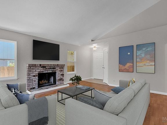 3BD/2BA North Santa Rosa Contemporary with a great single-level floor plan, attractive front and back yards, and a serene cul-de-sac location near Pioneer Park, local schools, shopping, dining and more. 1936 Seville Street greets visitors with roomy formal living room that boasts vaulted ceilings and a wood-burning fireplace, and bright adjoining kitchen with dining area, good cabinet space, and sliding doors to the attractive rear deck ready for outdoor dining. The home's East Wing features a roomy primary suite tucked privately at the home's rear that includes big closets, a modern primary bath, and sliding doors to the cozy rear patio. Two additional ample bedrooms, and a full guest bathroom with shower over tub, completes the attractive floor plan. Fresh paint, laminate floors, and high ceiling run through this well-maintained home. A two-car garage with room for storage, workshop and/or hobbies, and attractive front and year yards ready for pets, play and parties, completes this comprehensive offering. Wonderful location in a well-established neighborhood close to area schools, markets, restaurants, parks, trails, hospitals, and the many Wine Country amenities that make the area a desirable place to live.