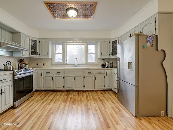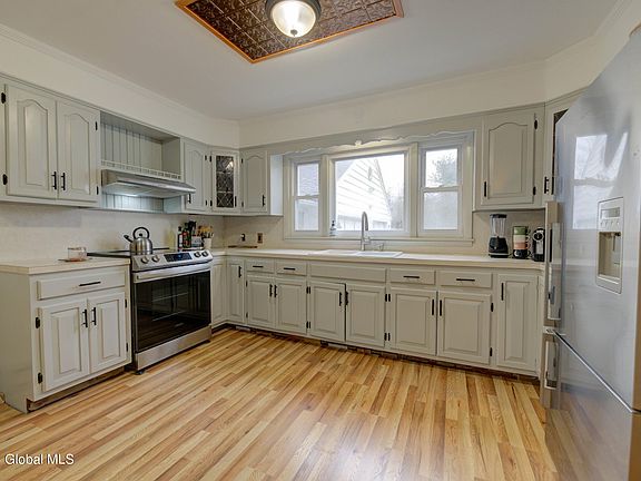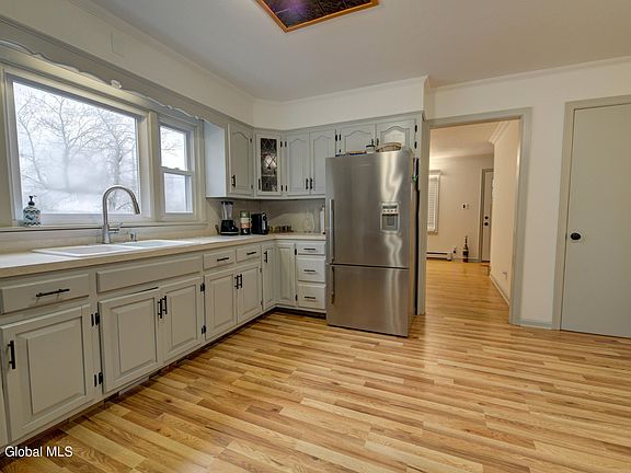 This cape cod style home sitting on 2.5 acres in Fonda-Fultonville School district has so much to offer !! Two bedrooms and 1 bathroom on the main level and an additional finished space upstairs which would be perfect for extra bedrooms, office, or storage. The hardwood floors were recently refinished and there is a fresh coat of paint throughout. Propane fireplace in the living room and stainless steel appliances in the kitchen. Thats not all.. step outside to your large 2 car garage with bonus storage above!! This home is currently on a septic but work is set to begin April 22nd for public sewer!!