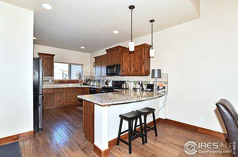 Welcome Home! Come make this Great 1 year young Townhome Yours! Main Floor Master, En Suite on the Upper Level, 3 bath, 2 patios to enjoy the changing Sun Shine. Great Open Space to the East. Wood Floors, Full Tile Backsplashes, Granite Countertops, Alder Cabinets, All Appliances including Washer and Dryer all just 1 year old. Breakfast Bar, Dining Area, Walk In Closets, Metal Railing on both Patios with Entry Gates and a New Full Glass Storm Door. Walking Trails, Close to Boyd Lake State Park. Easy access to amenities. Low HOA Fees and NO METRO DISTRICT!
