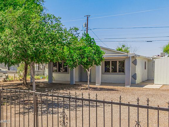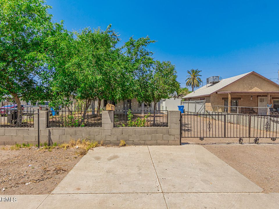 Buyers cancelled within the inspection period. Come see this charming Phoenix home now available! You will love the gated front yard with mature trees and plenty of space for outdoor activities and landscaping possibilities. Enjoy relaxing at the front covered patio! Well-maintained interior features tile flooring throughout the main areas, carpet in most of the bedrooms, neutral paint, and curved entryways softening the look of the home. Create delicious meals in the kitchen offering ample wood cabinetry and counter space, and appliances. Check out the primary bedroom boasting a tiled sitting room, a private exit, closet space, and an ensuite for added comfort. Also including convenient storage. Overall, this charming home provides a blend of ease and practicality. Take a look!