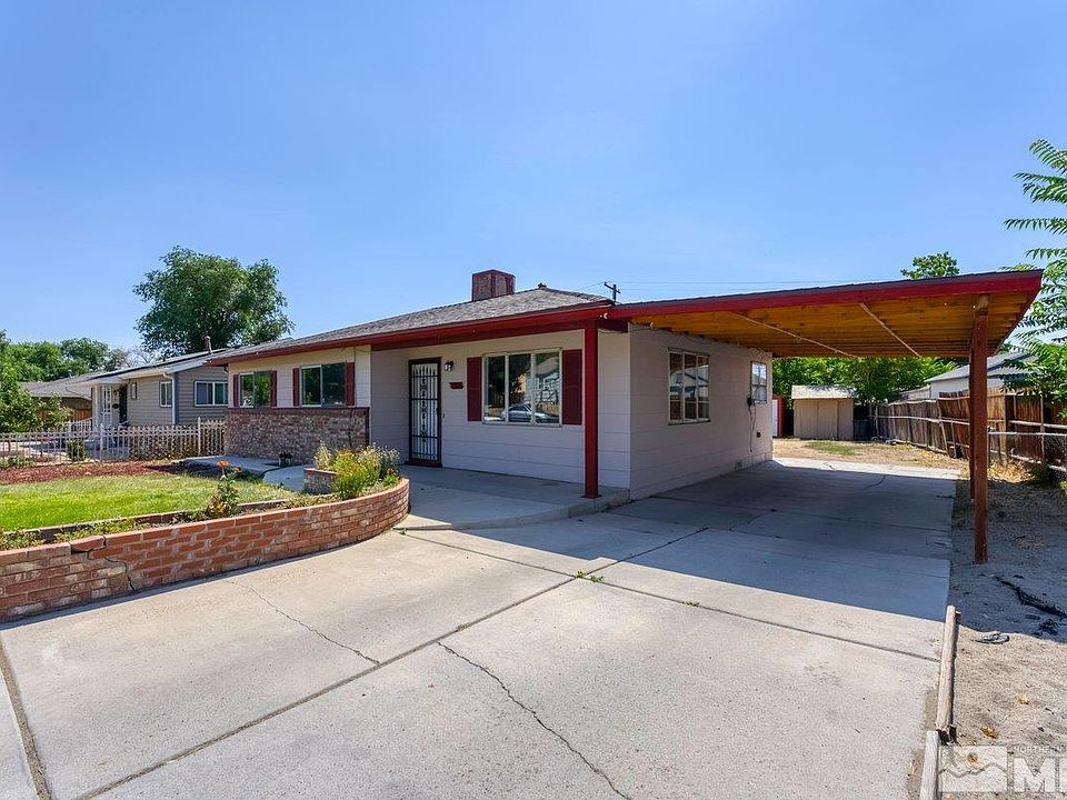 Awesome Single Story Home Close to UNR! Sellers have updated with new interior Paint, New carpeting in bedrooms, New laminate in living areas. 3 yr new roof, 1 yr new Furnace and Hot Water Heater, garbage disposal. Updated electric fireplace in living room. Some windows have been replaced. Front Yard fully fenced, Extra Large Carport, room for RV or Trailer parking plus Storage Sheds. One Year Home Warranty included.This home Qualifies for Great financing programs, call LA for details., Pizza Oven and Fire Pit in the large back yard (no warranty) & Chicken coop. Cool expensive retro metal cabinets in kitchen. Fantastic low yearly property taxes and no HOA. Great Investment or First Time Homebuyer opportunity. See documents under the D tab and Call listing Agent for more info.