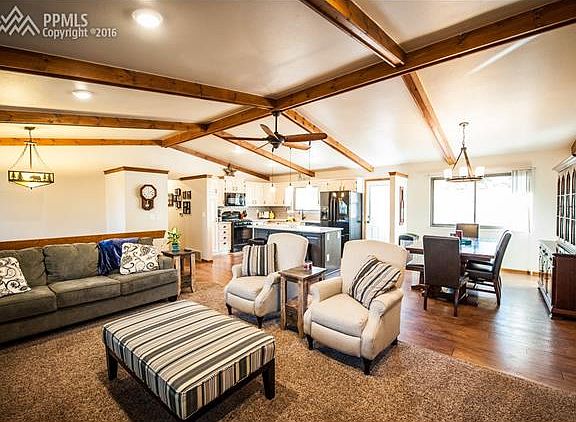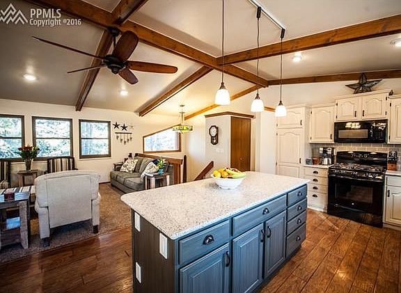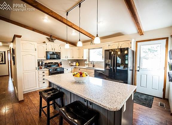 Tucked in the towering pines of Woodmoor on over half an acre! Great room concept floor plan with wood beamed ceilings and recessed lighting - perfect for entertaining! Remodeled from top to bottom. New 650 sq ft back deck with a gas stub for a grill or firepit. Fully remodeled kitchen with Quartz counters, subway tile backsplash, gas range, wood floors, dual color cabinetry, pantry cabinet and large island with pendant lighting. Two newer gas log fireplaces with brick surround and blowers. Award winning School District 38! Great access to I-25, HWY 83, Denver and the amenities of Monument and Palmer Lake. Large dining room that can easily accommodate an 8 person table. Master suite with lots of natural light, huge walk-in closet and newly remodeled master bath including Quartz vanity top, two windows and an oversized slate tile shower with ledge built-ins and glass surround. The main level has newer Anderson by Renewal Windows. Upper level guest bath remodeled with solid surface vanity top, neutral tile with glass and stone accents. New neutral carpeting and LED lighting throughout. Newer roof and gutters. The lower level includes a sizable family room, 1/2 bath, laundry room with utility sink and the 4th bedroom. Oversized garage with newer LED shop lighting. Asphalt driveway. Invisible dog fence lines are in place - just add the unit! Fire mitigated half acre lot with lots of privacy from surrounding homes. Front partially covered deck with double door entry. Meticulously maintained!