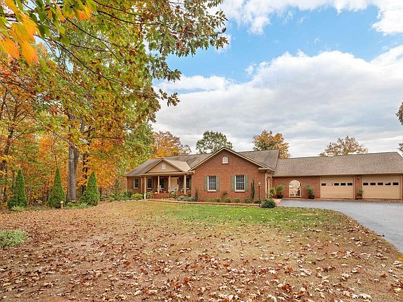Located minutes from Gordonsville in the desirable Hare Glen neighborhood, this well maintained home has many great features. The 4 bedroom, and 3 full bath brick home has a large living room with fireplace, eat in kitchen with custom hardwood cabinets, master bedroom, and bath, formal dinning room, large screened in porch, and laundry, all on the main floor. most of the main floor has hardwood flooring. The partially finished basement has a large den with fireplace, and wet bar, bedroom with full bath, and a large storage room. The 2.2 acre lot has plenty of room for gardens, and the back of the house has a beautiful eastern view overlooking farm pastures. the home also has garages with 3 bays.