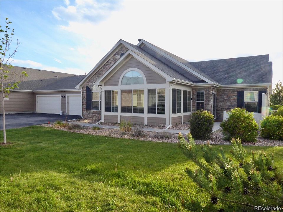 You will love this maintenance free ranch style home in the desirable "Villas at Great Plains Park". There are no stairs between the attached two car garage and this bright open floor plan featuring vaulted ceilings and a bright spacious sunroom! Your own private fenced patio is right outside your front door with plenty of room for seating and a grill. The central living room boasts a cozy gas fireplace and is cable ready for hooking up your TV. French doors open from the LR onto the sunroom which could be used as a library, office, rec room or music room. The dining room is open to the kitchen, separated by a breakfast bar for casual dining. The generous kitchen features abundant cabinets, solid surface counters, all appliances plus two pantries. The two large bedrooms are on opposite sides of the living room and each have a large walk-in closet. The master suite has a 3/4 bath with walk-in shower; the other bath is located near the 2nd bedroom. Off the kitchen is a spacious laundry room with a utility sink, trash compactor and more storage cabinets. Additionally, an inside storage room is located adjacent to this area with shelving included. The interior features newer paint, freshly cleaned carpets, is smoke free and pet free. The Villas is located near all amenities for shopping, grocery delivery, dining or take-out, health care facilities and recreation. Easy access to E-470, The Southlands shoppping area and Denver Intl'l Airport. This is a perfect lock-n-leave home for those who like to travel and a wonderful community for those looking for peace and quiet or more social opportunities. The fabulous clubhouse is a warm welcoming space and features a full kitchen, outdoor pool, fitness center and conference room. Privacy abounds in this "Abbey" model condo that is a rare commodity and sure to please. Easy to show following the Covid-19 guidelines. Very clean property, quick possession. You won't be disappointed!