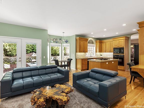 Pride of ownership in Cooper Mountain! Open-concept kitchen features hardwoods, granite, full-height backsplash, drawer pull-outs, walk-in pantry, + island w/ built-in gas range! Other home highlights include view-through fireplace, extensive built-ins and custom millwork, French doors, wainscoting, soaking tub, recessed lighting, and plasma prep. Large + private yard, wrap-around porch, two patios, valley views!