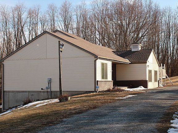 1 1/2 story with walk out basement - 3 bedrooms, 3 bath, 1 loft, 2 fire places, 7.7 acres. 2 car Detached + 1200 SF out building and lean-to. Security alarms throughout property. Wild Life pass through frequently, whitetail bucks, turkeys, etc. Good neighborhood.