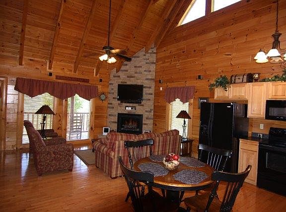 Luxurious 1 bedroom 1 1/2 bath cabin is located in prestigious Bear Creek Crossing in a gated community with a beautiful 60' water fall at the entrance. Resort also has indoor and outdoor pool, kids play area, and miniature golf course. Cabin has one king size bed in master bedroom along with sleeper sofa and futons in the living room and loft. Loft has pool table. Enjoy the evening on the deck over looking the mountains in either the hot tub or relaxing after a busy days or just simply in the rocking chairs or porch swing while dinner cooks on the gas grill. There is a 42' Plasma HD TV in the living room with surround sound and DVD players, 2 smaller TVs in the loft and bedroom. The resort is only a few minutes from all dining, shopping and tourist attractions in the area. PROJECTED RENTAL HISTORY FOR 2016 WILL BE $34,369!! A MUST SEE!!! Cabin name: Bearverly Hills