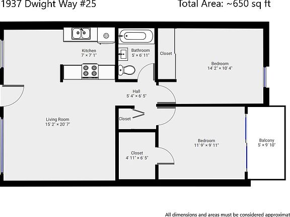 - Total interior livable area: 650 sqft