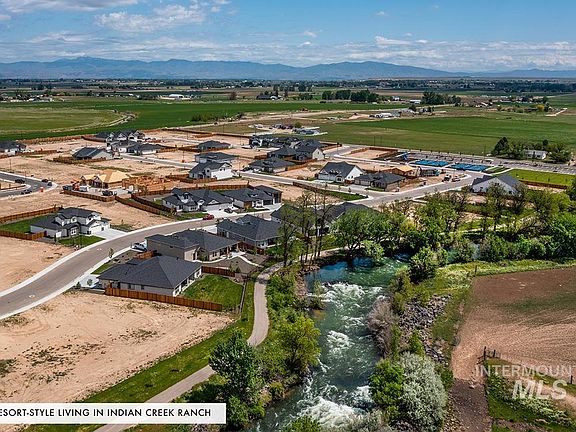 The Teton with boat bay by Sterling Homes provides an efficiently sized single level design that lives large with designer style on a stunning waterfront lot in Indian Creek Ranch. This model features an upgraded garage configuration to include a generous boat bay. The sprawling open concept creates an effortless flow for everyday living and entertaining with banks of windows framing the serene setting. Beautifully finished and equipped gourmet kitchen features built-in stainless steel built-in appliances (including dual wall ovens), soft-close cabinets with stylish hardware, and brilliant granite/quartz countertops. Smart home upgrades include: CAT-6 wiring, mesh whole house wifi system, 5.1 audio system, built-in speakers on back patio, smart thermostat, and energy-efficient furnace and A/C. Indian Creek Ranch is Kuna's first resort-style waterfront community in the land of open skies.