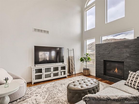 - Description: Vaulted Ceiling, Stacked Stone Fireplace