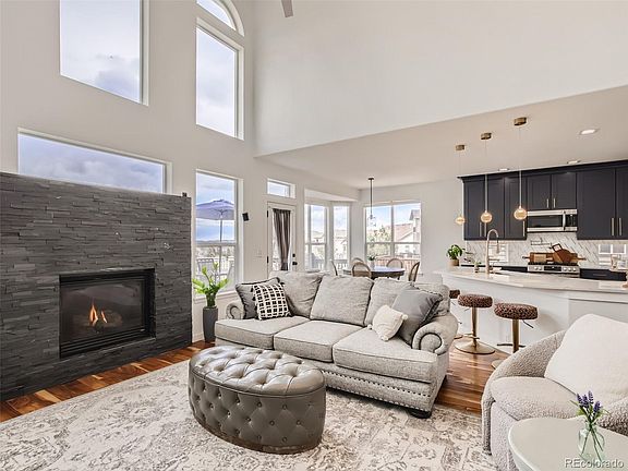 This incredible home in Castle Highands will blow you away! Remodeled top to bottom with fresh exterior and interior paint throughout, this fabulous two-story home with finished walk-out basement is immaculate. Featuring a chef's kitchen with gorgeous navy cabinetry and quartz countertops, stainless steel appliances, sitting room or formal dining space, tall vaulted ceilings in living room that highlight the stacked stone fireplace, and large Trex deck. Gorgeous hand scraped engineered wood floors are featured throughout the home. Upstairs, retreat to the spacious primary bedroom that has incredible views, and a stunning master bath complete with a free-standing soaking tub, rain shower with frameless glass, custom tile work, and a closet that has custom built-ins and wallpaper on the ceiling. Additionally, a bright and open loft space, along with two secondary bedrooms upstairs are complete with spacious walk-in closets and a full bath. Downstairs, the walk-out basement is perfect for entertaining. Complete with surround sound speakers, fireplace, stunning wet-bar, the rec- room is a dream. There is extra space for guests in the non-conforming bedroom that is complete with a murphy bed, and an additional bedroom in the basement can be used as a workout space or even a home office. Finally, the yard has recently been updated with turf lawn, stone paver patio and fire pit area, and a new Nordic hot tub. The three-car garage has new epoxy flooring. Located within walking distance to the Miller Sports complex and numerous walking and running trails. Convenient access to I-25. This home is too good to miss!