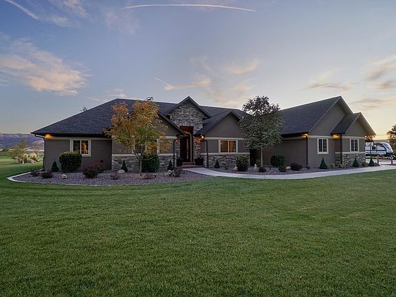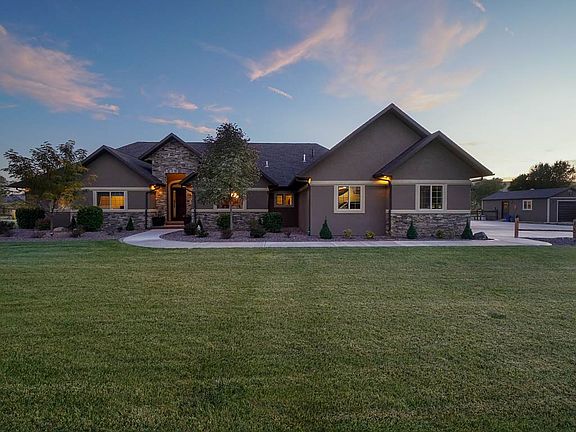Stunning custom built estate on almost 4 acres near Adobe Creek Golf Course! Relax and take in the gorgeous unobstructed Monument views from the picturesque covered patio and large picture windows. Home features 3,405 square feet (4 beds, 3 baths, 5 car garage/workshop, and RV parking). An entertainer's dream kitchen with custom cabinets, soft close features, double ovens, stainless steel appliances, wine fridge, walk-in pantry, granite counter tops, and a heated island. Master bedroom is a true retreat with 5 pc. bath, jetted tub, his/hers sink, double head walk-in shower, heated floors, and walk-in closet. Step outside the master to enjoy 3.69 acres of over the top landscaping with bridges and ponds accompanied with 3 shares of water, as well as an accessible bike path at end of cul-de-sac. This home has virtually every bell and whistle that defines luxury living.