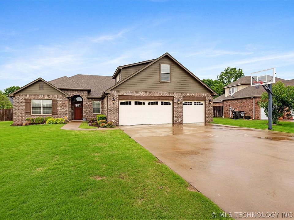 This beautiful, well-built, all brick home is located in a highly desirable school district, making it an ideal choice for families. This home offers a large open concept floor plan with 4 (or 5) bedrooms, 3 full bathrooms plus an office (which has a closet so it could be used as a 5th bedroom). The upstairs consists of one large bedroom with a full bath and a large walk-in closet, perfect for an older child looking for privacy or for visiting family. The home has many decorative features such as crown molding, ceiling fans, decorative lighting and tray ceilings. For added security a storm cellar in located in the garage floor. The large laundry room is conveniently located inside and features a sink. The large, fully fenced, backyard with a large patio is ideal for outdoor entertaining and activities. Schedule your viewing today and be captivated by this beautiful home.