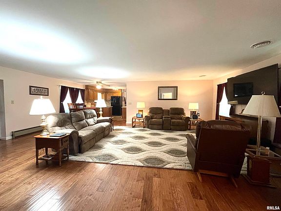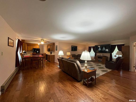 Ranch home situated on 1 acre. Has 3 bedrooms, 2 baths with open floor plan. Covered front porch leads into this home, which was built with 2 x 6 walls for front and sides and the back of home is double walled insulated construction. Engineered hardwood floors run through living, dining and hallway installed in 2016. The 3 bedrooms all have carpets (2016). Roof of home was 2009 and windows 2010. Home has electric baseboard heat, central air and city water. The blacktop driveway was done in 2022 and resealed in 2023. Kitchen and laundry room area have waterproof vinyl tile. Out back door of laundry room you will find the 17 x 40 wood deck. This deck is attached to a 32 x 20 workshop, which has water from the well, propane heat and window air units. The workshop comes with two storage areas, one is to house your lawnmower and has it's own outside access door. Shop roof was new in 2020.There are a double row of trees to back of yard which helps to form a wind break. You will also find additional parking to right of driveway, which has power to it that owners used for their motor home.
