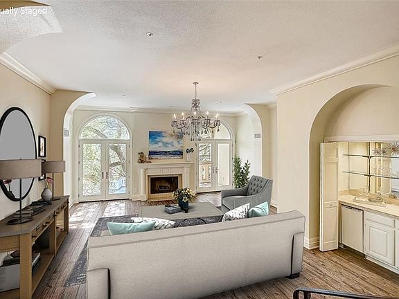 Enjoy breathtaking views of Lake Austin through towering oak trees from every room of this 3 story condo with a rooftop terrace! With a marina and the lake on the property, your boat, kayak, or rowboat are just a short walk away down the elegant wrought iron spiral stairway! Boasting gorgeous chandeliers, crown molding, a wet bar, and driftwood-like tile, the main floor is large and open with a fireplace, perfect for entertaining. Each room has an elegant, Mediterranean-style stone patio, and the primary bedroom has a fireplace as well! The rooftop terrace has panoramic views of the water and the numerous Austin area fireworks during celebrations! The home is complete with an elevator serving each floor. Zoned to Eanes ISD, one of the top 10 school districts in Texas and top national ranking; this school offers a "private school type education" in a public school. The community is gated, feels safe and friendly, and the entire area offers scenic walking routes.