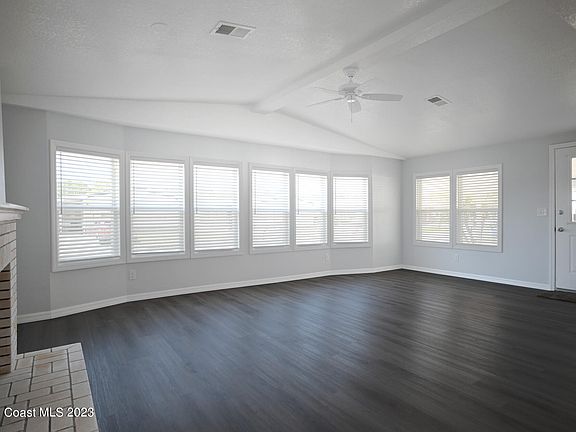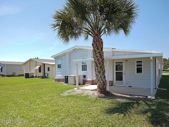 Gorgeously renovated with attention to detail and NEW ROOF! This beauty has a very spacious layout and is ready to move into! Renovations include new vinyl plank flooring, dual-paned windows, and all walls & ceilings replaced with sheetrock. The bright and beautiful kitchen has a large island with breakfast bar, brand new stainless appliances, & tile backsplash. The large front living room has a cozy electric fireplace and plenty of natural light! The spacious master suite has a walk-in closet, a large new vanity, new shower and toilet. There are multiple spaces for dining and living in this wonderful home as well as a large Florida room, and a covered patio. Own your land in this great 55+ community with optional HOA! Centrally located nearby I-95, US 1, downtown, shopping, & restaurants. restaurants.