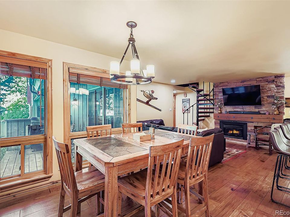 Fabulous 3-bedroom, 2-bathroom condo with a loft in Keystone, Colorado at the Flying Dutchman, is now available! The ground-floor primary bedroom features a private ensuite full bath. The second bedroom has private access to the deck and a full bathroom. This ground-floor unit offers spacious living with a third non-conforming 3rd bedroom area in the loft. A full remodel in 2013 expanded the entryway and added custom finishes including hand-troweled texture, rounded corners, radiant-heated tile floors in the kitchen and bathrooms, extensive stone and tile work, updated lighting, hickory cabinets, slab granite counters, and stainless steel appliances—creating a warm mountain-contemporary feel. Additional upgrades include windows, a gas fireplace and stove, solid knotty alder doors, and oil-rubbed bronze hardware throughout. A new roof was installed in 2024.