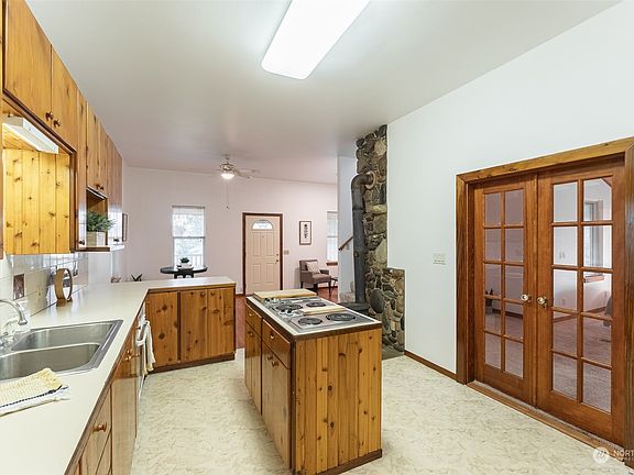 This private setting 2 bd 2 bath 1920's farmhouse style home located on a dead end street is ideal for a buyer looking for a slower pace. This move in ready home is on 2 acres with mature fruit trees including pears, apples, cherries, grapes, hops and more. The home features a primary bedroom with ensuite bathroom and an area that is already plumbed to add a wet bar, brand new roof, fresh interior paint, cozy wood stove, 2 carports, RV parking, a detached barn/shop space and is wired for a generator. The large wrap around deck is perfect for outside dinners, quiet reading and enjoying the magical sunsets. A perfect place to call home!