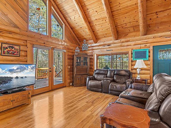Nestled on 2 serene acres, this custom log home is a hidden gem awaiting its new owner. Located on a paved county road, this tranquil property offers privacy & seclusion. Lush landscaping features lighted bridges, meandering pathways & a seasonal pond w/ a soothing water feature. Inside, vaulted tongue & groove ceilings, hardwood floors & an open kitchen create a warm & inviting ambiance. Home boasts thoughtful details w/ beautiful French doors & high windows offering lovely views. Recent upgrades include a Daiken heat pump, granite vanity in the upstairs bathroom, gutter guards, wood stove in living room & Tri-fuel generator wired to the house. The property also offers a strong well w/ new emergency hand pump, large dog run, greenhouse with electricity, shed, and updated appliances. Don't miss the opportunity to make this meticulously maintained retreat your own sanctuary of peace and comfort.