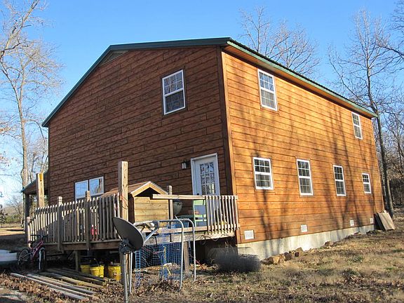 Here is an opportunity to own a beautiful home in a wooded setting. Just minutes from Stockton Lake, this offering has that warm inviting feel of wood beam construction inside and out. An open kitchen/dining/ living room arrangement greets you as you enter. The kitchen counters are made from massive planks of white pine with hickory cabinets. There is a double door stainless refrigerator, a double oven stainless glass top electric range and a stainless dishwasher. A stone veneer island with a granite top round out this space. The spacious living room has an area reserved for a freestanding stove of some type. The floors on the lower level have hardwood, carpet and tile. The master bedroom is on the main level with a nice sized full bath with a walk in tiled shower and a jetted tub.