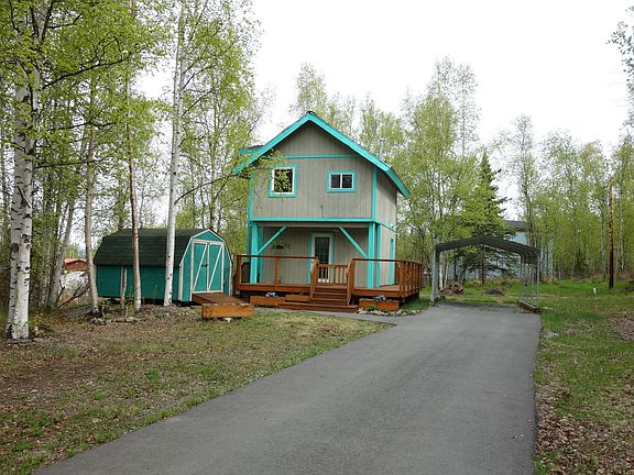 Charming and cozy two story cottage in a peaceful setting with lots of storage & covered parking! This efficient home is located close to Chugiak Elementary and offers quick access to the Glenn. The upstairs area can be configured as a master suite with bath and walk in closet, or as a living room & sleeping loft. Storage abounds with the insulated & wired, shed & storage room on side of home.