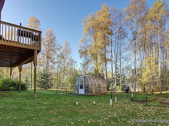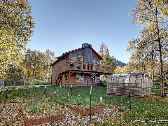 Home with a View of Inlet/Susitna, Alaska Range, AND quality living. Wrap around deck, fenced yard for Fido, greenhouse, 3 car garage attached AND 40x30 Pole Barn (garage-mahal)with 2 doors, cabinets, workbench. Cedar siding, new 100 mph shingles 2009. Level usable lot.