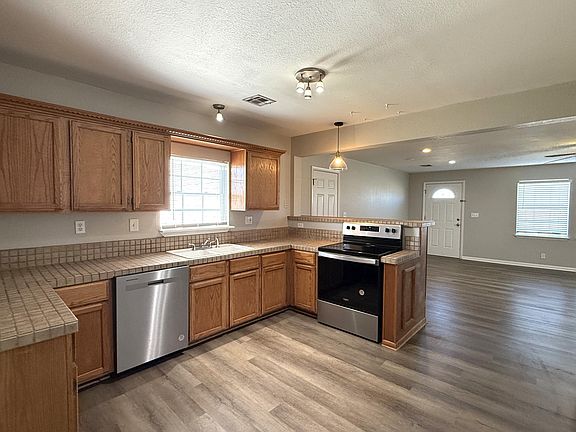 Freshly renovated with newer paint and flooring throughout! 3-bedroom 1-bathroom home, two car attached garage- The kitchen is equipped with a stainless steel electric range and dishwasher- Eat in counter top- Pantry- Dining area off open living- Spacious open living room w/ side door that opens to small deck area- Oversized lot with plenty of space from neighbors- Two car garage with extra room- Washer/Dryer hook ups in garage Renters Insurance Required