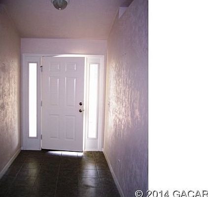 Clean and well-maintained, this home in Oak Ridge S/D off US 441 between High Springs and I-75 exit 399 at Alachua (2 mi from each) offers an easy commute to G'ville. It's also 2 miles from Santa Fe High School. Located at the back of the s/d away from the busy highway, the back screened porch overlooks old oaks along an long-abandoned railroad bed (no tracks), giving the property an attractive view. Features include a 2-car garage, an open front porch, and vinyl privacy fencing on the sides of the back yard. Enjoy a spacious front porch ready for several rocking chairs. The floor plan allows extra privacy for the 2nd & 3rd bedrooms and bath. Vaulted ceiling in the living room/kitchen/dining area. This is a Fannie Mae HomePath property.