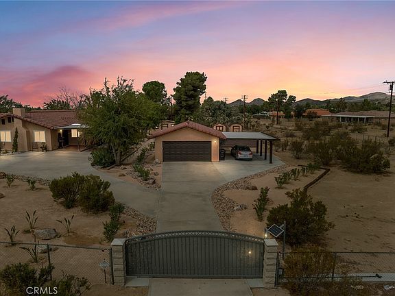 This beautifully crafted mature and well-maintained custom home offers comfort, character and space in a highly desirable neighborhood. With 3 bedrooms and 3 full baths and a versatile bonus room that can easily be a 4th bedroom, This home is perfect for anyone who values both charm and function. Step through the custom covered entry into a welcoming double-door foyer that opens to a formal living room and dining room. A cozy family room with a real brick fireplace and wet bar sets the stage for gatherings. The kitchen features granite counters, abundant storage and a sunny breakfast nook with a slider leading to a screened in porch ideal for hosting guests or simply relaxing in a cozy atmosphere. A huge bonus room offers endless options, a fourth bedroom, office, craft room or whatever you dream up with a full bath conveniently nearby. The primary suite includes a view of a private patio with stylish astroturf, shaded umbrellas and plenty of safe space for your 4-legged friends. Outdoor living shines here with multiple patios: one off the family room and kitchen for morning coffee or evening libations. The property also includes a detached two-car garage with attached carport, 3 sheds for extra storage and 2 solar powered gates for ease and security. Recently the grounds were professionally landscaped with low maintenance desert plants and rock creating stunning curb appeal. An extra bonus t is zoned for horses,goats,chickens or ? All this in a prime location just off Hwy 18 close to all services. Don't miss out on this one-of-a-kind home. For full list of recent upgrades see attachment. Furnishings may be negotiable.