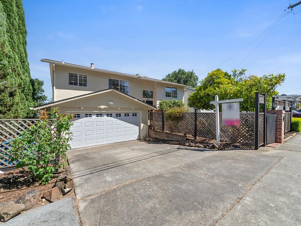 This home won't last! This spectacular split-level offers breathtaking Bay views and modern comforts. This cheerful, bright home boasts a thoughtful layout perfect for family living and entertaining. An inviting living room with hardwood floors, crown molding and recessed lights opens to a lovely deck, ideal for enjoying the stunning, sweeping vistas. Formal dining room leads to updated kitchen featuring Corian counters, gorgeous glass tile backsplash, SS appliances and an eat-in nook. A dedicated pantry and additional cabinet and counter space make a perfect place for a coffee bar or buffet area. Upstairs primary suite offers picturesque views and an updated bath with stall shower and contemporary fixtures. Downstairs, a versatile family room provides a variety of possibilities for use and convenient access to the rear yard. The 2 downstairs bedrooms and full bathroom with shower over tub offer flexibility for hosting guests or multi-generational living. The property includes an attached 2-car garage and gated front yard featuring bountiful citrus trees. Additional amenities include a concealed laundry utility closet with washer & dryer and central A/C. This home perfectly blends comfort, convenience and natural beauty, offering an exceptional living experience daily.