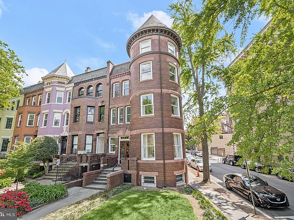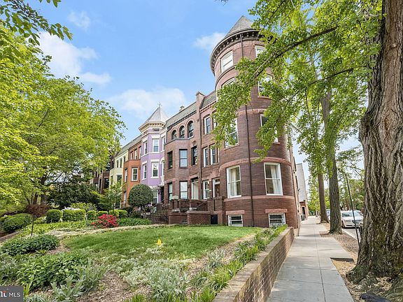 OPEN HOUSE. May 12, 2 to 4 pm. Welcome to this rare find in the KALORAMA TRIANGLE area of NW DC! On one of the most beautiful and well-kept streets in the area, a quiet one-way block, this 4-unit Victorian brownstone is a semi-detached building on a corner lot with light-filled rooms and a large landscaped front yard. Unit # C is a 1 BR/1.5BA condominium with 887 sq ft of interior space. The unit is filled with architectural elements including 2 original fireplaces, original pine floors, curved moldings, 10 foot ceilings, 6 foot windows, and a turret wall! The sunny and spacious Living Room/Dining Room area includes a fireplace, floor to ceiling windows, coat closet, and Powder Room and leads to a separate Kitchen with white cabinets, stainless appliances and granite counters, all opposite another window. The large bedroom has its own wood-burning fireplace with mantle, a double closet, in-unit washer and dryer, and ensuite full bath, featuring a huge marble walk-in shower with built-in marble bench and stained-glass window. Unit #C is newly painted and staged with newly refinished floors - move-in ready! The condo resides in a pet-friendly building that is centrally located in the middle of NW DC, on the same block as the Kalorama Triangle Flower Garden and near to Kalorama Park, various dog parks, and entrances to Rock Creek Park. Kalorama Triangle sits between Woodley Park and Adams Morgan: walkable to Woodley Park or Dupont Red Line Metro, Metrobus, Rock Creek Park, and the National Zoo, as well as Adams Morgan's Line Hotel and some of Washington's best dining including Tail Up Goat, Lapis, Tryst, and more.