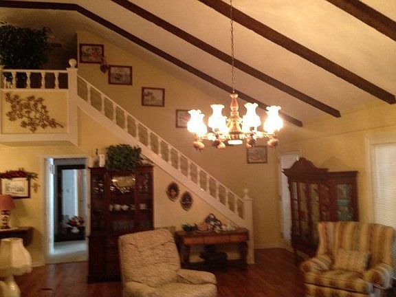 Waterfront 100 Ft. shoreline, pier, sandy beach,boat ramp, fenced yard, patio,workshop,storage shed,landscaped. Cathedral cellings,open floor plan,large kitchen,both master bedroom & second bedroom on ground floor have two walk in closets. Third bedroom upstairs has half bathroom. Walk in attic,lots of storage space, pantry in kitchen, one car carport,utility room.