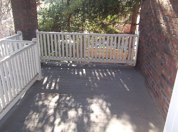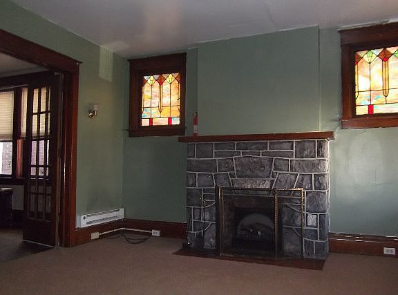 Hardwood floors and french doors lead into the living room adorned with a stone fireplace and stained glass windows. Washer and dryer on site. Also has a stoned in balcony for those nice summer evenings. All electric for easy billing
