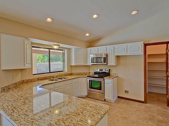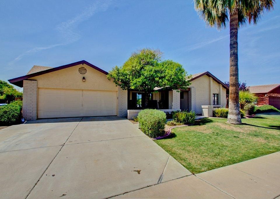 Perfect 4 bedroom, 2 bath single story home in Mesa! Walk in to a huge living/dining room combination with soaring ceilings. The kitchen is a cook's dream with granite counter tops, stainless steel appliances, huge walk in pantry and freshly finished cabinets. Large 18'' tile in kitchen and breakfast room. New carpet and paint throughout. Large great room is anchored by stone fireplace. Gorgeous granite vanities in bathrooms. Luxurious master retreat with French doors leading to backyard. Master bath boasts dual sinks with granite counter tops, separate bath and walk in, fully tiled shower. Backyard is an oasis with covered patio, diving pool, mature landscaping and lush green grass. Do not miss this opportunity!