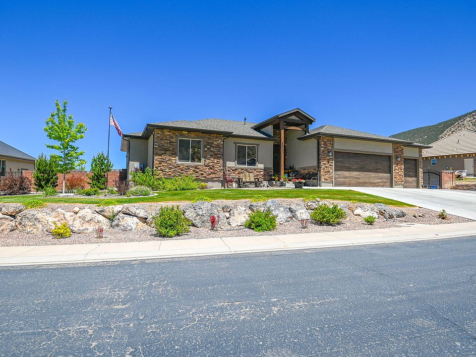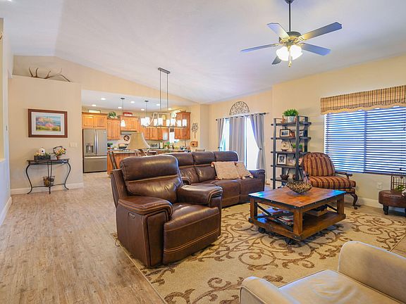 Immaculate home in a desirable location. 3 car garage with tons of RV/Trailer parking with beautiful stamped concrete paired with fully fenced and landscaped exterior and a gas firepit. Great main floor layout with custom cabinets and granite countertops throughout. High end finished in the basement. Wet bar, finished ammo reloading room with tons of cabinets and counterspace, LVP flooring and custom tongue and groove walls. The perfect location with views of canyons and hills and protection from the wind. The listing Broker's offer of compensation is made only to participants of the MLS where the listing is filed.