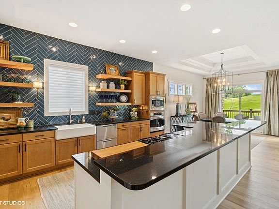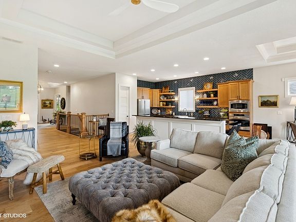 This single-family home, located near the NW corner of Wakonda Country Club, provides exceptional golf course views and is surrounded by majestic oak trees. From the spacious back deck, you can enjoy watching play on holes 1-5, as well as 16 and 17. The home boasts over 3800 sqft of beautifully finished space, perfect for entertaining with its open and inviting flow. The interior features a recently redesigned kitchen, complete with counter-to-ceiling tile, a blend of cabinets and open shelving, and a large island that offers both bar and counter seating. High-end appliances include a Fisher & Paykel double-drawer dishwasher and a Bosch refrigerator with a built-in wine cooler. The home is adorned with wide plank white oak flooring and a main floor hall bath with marble floors. The main level has been professionally painted, and other updates include carpet in the master bedroom, updated light fixtures and ceiling fans, and modern cabinetry hardware. Home includes 4 bedrooms plus a large non-conforming bedroom, and 3 bathrooms. The finished lower level, with large daylight windows, features a second fireplace and a wet bar, adding to the home's appeal for gatherings and relaxation. Additionally, there is ample storage room and a workspace with cabinetry. The oversized garage accommodates 2 vehicles plus a golf cart, bikes, tools, and more, making this home as functional as it is beautiful. Enjoy the prime location near Waterworks Park, Grays Lake, downtown, and the airport.