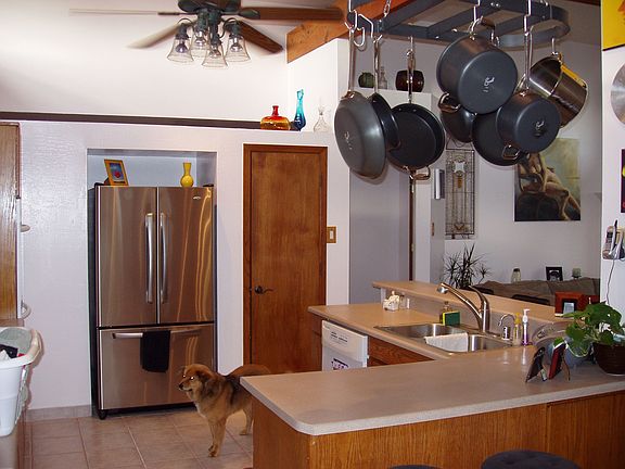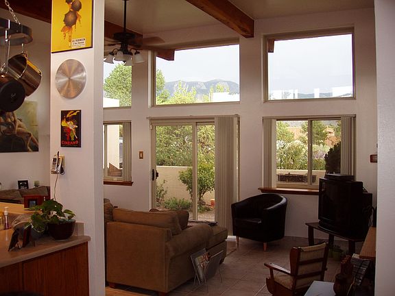 Construction: Frame / Stucco Roof: Tar and Gravel - Refurbished • ENTRY (7’2 X 18’6) Custom Beveled Glass Entry Door Brick Floor Skylight Entry Closet • LIVING ROOM (13’10 X 21’7) 13” Ceramic Tile Floor Raised Beam Ceiling with Fan/Light Heatolator Fireplace with Wood Mantel, Brick Hearth and Accenting • KITCHEN (10’7 X 12’) 13” Ceramic Tile Floor and Backsplash Raised Beam Ceiling with Fan/Light and New Halogen Track Lighting Skylight and Clerestory Windows Under Cabinet Lighting New KitchenAid 30” Stainless Steel Double Convection Oven Ceran Cooktop with Instant Halogen Burners Radarange Microwave (Largest Residential Unit) KitchenAid Dishwasher HotSpot Instant Hot Water Pantry Closet NOOK (8’9 X 10’7) Ceiling Fan/Light Round Accent Window and Clerestory • DINING ROOM (7’5 X 11’11) 13” Ceramic Tile Floor • FAMILY ROOM (11’11 X 15’5) 13” Ceramic Tile Floor Double French Doors Open To Park-Like Back Yard • LAUNDRY (8’4 X 8’9) 13” Ceramic Tile Floor Additional Cabinetry Electric Hookup • SOUTH BEDROOM (11’3 X 12’) Carpet Custom Closet • BATHROOM (4’11 X 10’) Slate Tile Flooring Italian Porcelain Tile On Counters and Tub/Shower Surround Large Skylight New Exhaust Fan with Heater New fixtures • NORTH BEDROOM (11’2 X 12’) Carpet Custom Closet More Incredible Sandia Vistas • MASTER BEDROOM (14’2 X 16’7) Carpet Double French Doors Open To Lovely Back Yard 8’9 X 10’10 Fully Organized Walk-In Closet • MASTER BATHROOM (10’ X 12’) New Ceramic Tile Floor and Tub and Shower Surrounds New Granite Countertops, Sink and Faucet New Glass Block Windows Cal-Spa Jet Tub Separate Shower with Rain Forest Showerhead Elongated Toilet Bowl New Exhaust Fan with Heater Skylight Ceiling Fan • TWO CAR ATTACHED, INSULATED AND FINISHED GARAGE • HEATING AND COOLING Radiant Hot Water Heat - Two Zones - Refurbished Central Mastercool Evaporative Cooling High Efficiency, Fully Programmable, Kenmore Water Softener