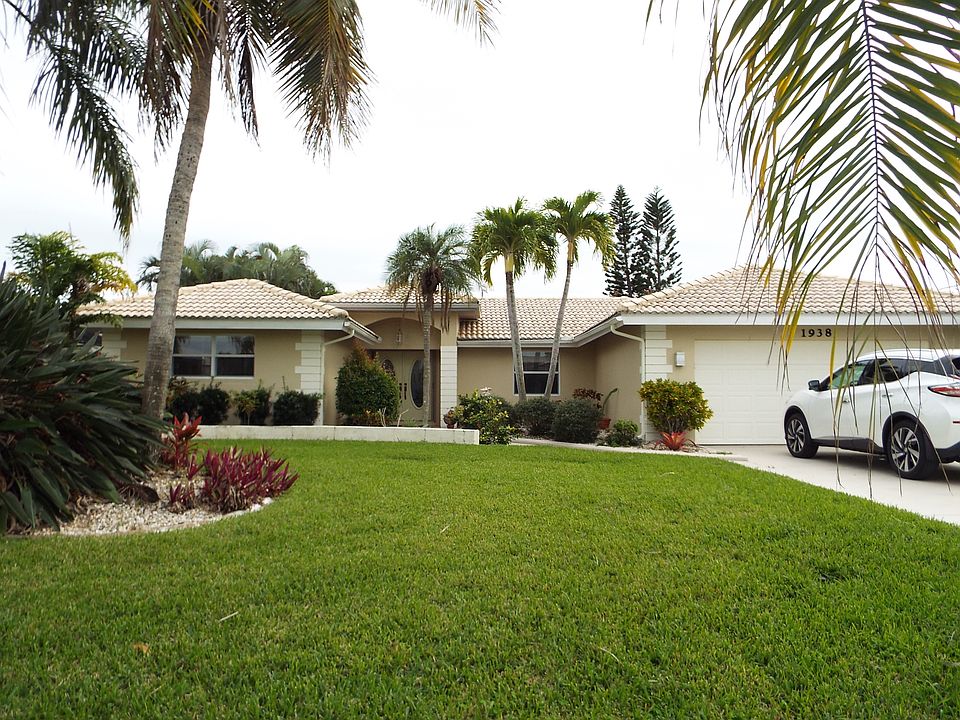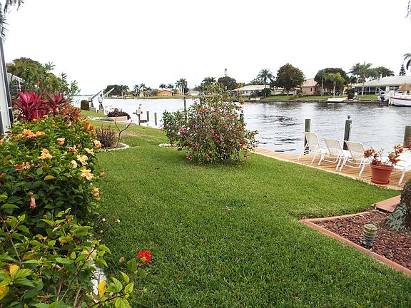 LOCATION, LOCATION, LOCATION! DIRECT GULF ACCESS WITH SOUTHERN EXPOSURE. JUST A FEW MINUTES FROM THE CALOOSAHATCHEE RIVER! Located in the desirable Palaco Grande neighborhood, on a 300 ft. wide canal, with view of the Caloosahatchee River from the boat dock that includes a 10,000 lb. boat lift, and a Jet Ski lift. Beautiful home, with 3 bedrooms, 3 full baths, 2093 sq. ft. Large custom designed gourmet kitchen with granite countertops. Also a beautiful and spacious outdoor kitchen with a built in fridge, sink and Jenn Air grille! The spacious master suite includes sliders to the pool, double walk in closets, a large walk-in shower with views to the atrium, and beautiful bath with whirlpool soaking tub. Enjoy your morning coffee on the huge dock and beautifully landscaped yard while you look right at the river. A rare find at $549,000.