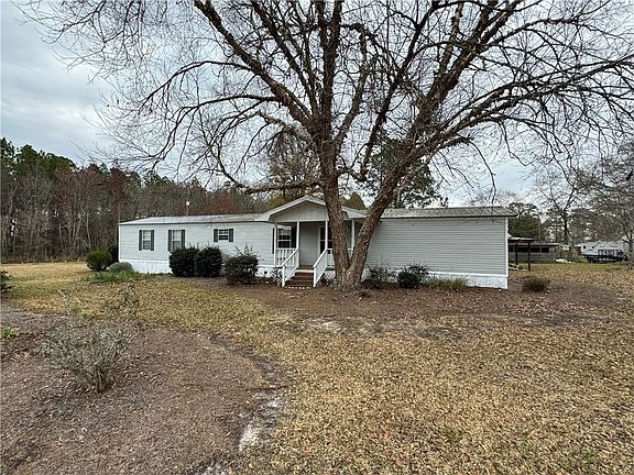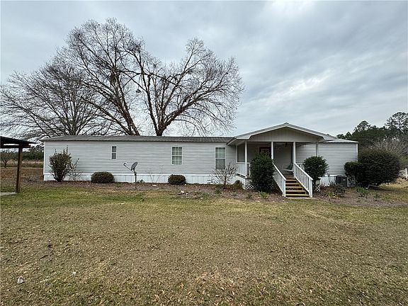 Here's a clean and well kept mobile home on almost 1 acre, featuring 2 bedrooms and 2 baths. Front entrance leads to living area with carpet. Kitchen with appliances and dining area, and new flooring. Laundry room. Each bedroom has a walk in closet and each has a large bathroom with separate tub and shower and double sinks. Nice back covered porch area. Outbuilding with covered parking. Grape vine. Deep well. This property should qualify under FHA eligible mobile homes with 3.5% down financing. Call today!
