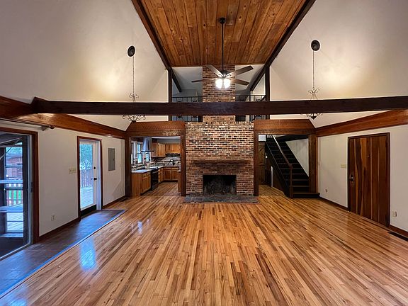 ONE OF A KIND! - This is no ordinary rental! Close-in country living! Shown by appt. only! 3 BR (+ office), 2 1/2 BA. Lovingly renovated gorgeous rustic home on acreage with circular drive nestled in private setting. Dramatic entry with soaring ceiling, beautiful stained glass windows, open wood beams, balcony (office/2nd living area) with wrought iron railing overlooking greatroom, gleaming wood floors, and impressive brick fireplace! New granite countertops, new stainless appliances, new barn doors, new flooring, new fixtures, and more! Outdoor fire pit, greenhouse, and expansive new side deck! Perfect home for nature lover or artist! You won't find another place like it! Minimum credit score 640. Non smokers only. Sorry, but no pets. Broker/Owner. Note: 1990 sq. ft. heated/cooled per tax record.