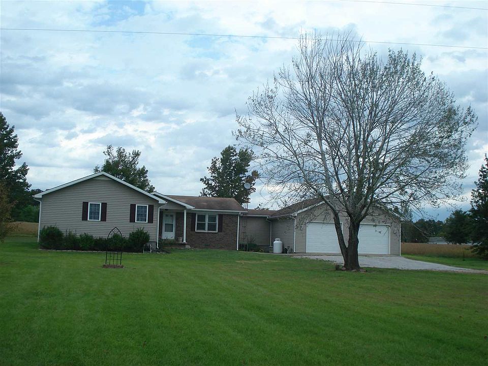 1 acre lawn - 3 bed/2 bath brick/vinyl home set back off road with 900+ sqft two car garage w/ample room for hobbies & extra storage.