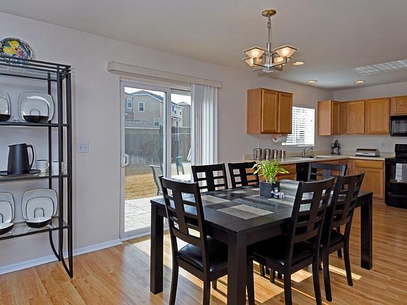 Immaculate home with lovely updates. Gleaming wood style flooring on entire main level. Front room is ideal for living room or dining room. Freshly painted interior (2017). Bright open kitchen has abundance of counter space & cabinets + pantry. Spacious eating area which looks out over stamped patio & beautiful back yard. All kitchen appliances included. Open floor plan is perfect for entertaining family & friends. 4 bedrooms upstairs brand new carpet upstairs. Master bedroom has attached full bath & large walk-in closet. Laundry closet conveniently located on upper level. Extensive add'l living space in finished basement which features big rec room, updated bath + 2 storage areas. Egress windows draw in lots of natural light. Newer carpet in basement. Exterior painted in 2016. Central AC, sump pit + pump. Outdoor entertaining will be a pleasure on the attractive stamped concrete patio. Sprinkler system. Great location ~ close to walking paths + park. Easy access to E-470.