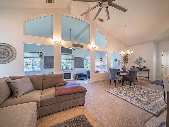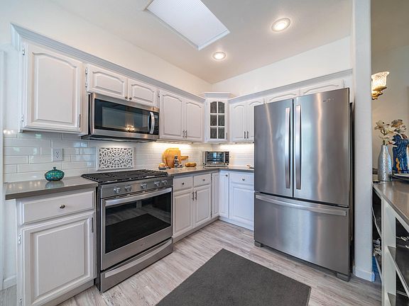 This custom contemporary home offers a unique and luxurious living experience on a beautifully landscaped 1/2 acre lot. The courtyard entry sets the tone for the stunning architectural design, with cathedral ceilings & an abundance of natural light from windows & skylights throughout the home. Recent updates, including quartz countertops in kitchen & baths & stainless steel appliances in kitchen add a modern touch to the spacious living areas. Split bedrooms with two master suites provide a sense of luxury & privacy, with one featuring a jetted tub and glass block shower. The third bedroom and separate office offer flexibility for your lifestyle needs.