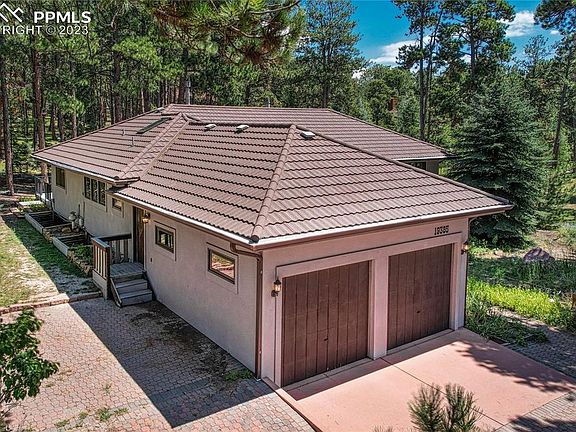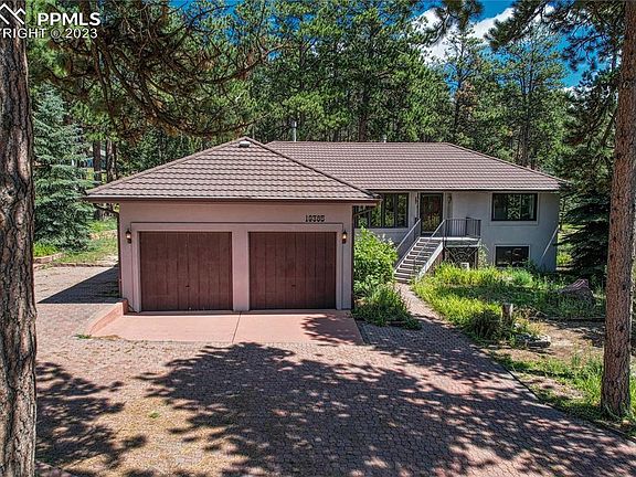 Presenting an exquisite ranch-style residence located in the coveted Woodmoor community. This 5-bedroom, 4-bathroom home is a true gem, perfectly situated on a sprawling treed lot that provides both seclusion and natural beauty. The expansive deck, conveniently accessible from the primary bedroom, living room, and secondary bedroom, offers a delightful space to soak in the surroundings and entertain. Inside, meticulous care and attention are evident throughout. The kitchen has been tastefully updated, harmoniously blending modern features with timeless appeal. Sunlight streams through the newer Andersen windows, infusing the interior with warmth and vitality. The plush, newer carpeting in the bedrooms offers comfort and style. Noteworthy enhancements include a whole-house water softener and humidifier, fostering an atmosphere of well-being. The property's resilience is fortified with fire mitigation measures, including a 50-year tile roof, gutter guards, eve vents, and synthetic stucco. Experience the tranquility of Woodmoor living paired with contemporary comforts in this remarkable ranch-style haven. A rare opportunity to own an immaculate residence where every detail has been thoughtfully attended to. Your dream home awaits.
