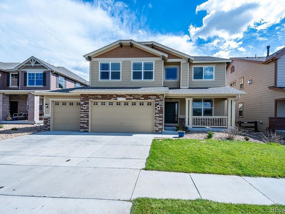 Amazing and beautiful spacious home featuring 5 bedrooms, 5 baths with 4-car garage with spacious floor plan. The open floorplan is an entertainer's dream which also features a covered patio off the kitchen for those beautiful Colorado evenings. Stainless appliances, Large center island with slab granite counters. The main floor has both formal living/dining rooms, the family room with a gas fireplace, a bedroom or study/den, half bath in Main floor, and hardwood floors. Two bedrooms upstairs are connected by a jack-and-jill bath, and a third bedroom has its own bath. The fourth or Primary bedroom suite is oversized with vaulted ceilings, walk-in closet, and 5-piece bath. 60% Basement finished with big hall, Bed room and full bath room, there are two unfinished rooms for lot of storage. Lots of windows and natural light throughout the home! Conveniently located at Stroh Road, walkable distance to shopping, restaurants and parks.