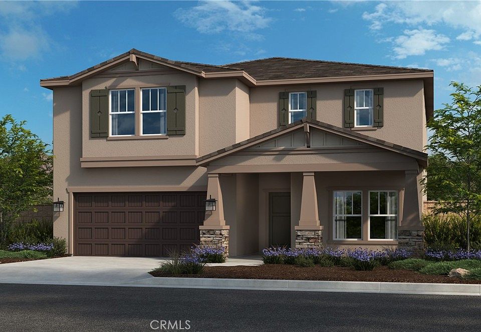 Welcome to our 2881 floor plan where inside, you will discover an open concept layout with 9-ft. first-floor ceilings. The kitchen boasts a walk-in pantry, upgraded appliances, Kitchen Island, maple shaker cabinets, Quartz counter-tops and Whirlpool® stainless steel appliances. Upstairs, a spacious loft provides space for a home office or play area. The primary suite features plush carpeting, a large walk-in closet and connecting bath that offers quartz counter-tops, a dual-sink vanity, and a large walk-in shower with ample storage space. Extra upgraded features include laundry room cabinets, Internet network upgrade package, exterior gutters, exterior patio slab in the backyard and Quad patio doors for greater lighting. Additional highlights of this all-electric home include a solar energy system (purchase or lease required), LED lighting and smart thermostat. This home is Move In Ready Conveniently located within Walking distance to Spring Mountain Ranch Park, which features a basketball court, sand volleyball court, and BBQ and picnic areas. Near Loma Linda University Medical Center and schools, including University of California, Riverside. Mello-roos built into estimated property taxes. Photo is a rendering of the model. Buyer can either lease or purchase the Solar.