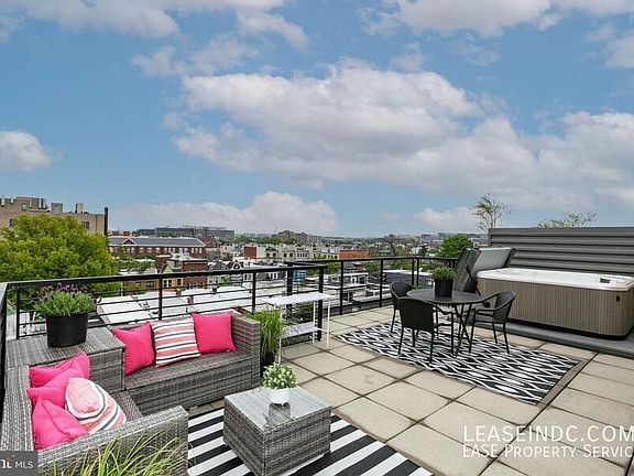 Penthouse 2 bed/2 bath condo with a private rooftop deck, off-street parking and an unbeatable 12th & U location! Welcome to the Moderno. Unit #503 spans nearly 1,000 square feet across 2 levels of living space. It boasts high-end finishes and fixtures throughout that make it the perfect place to call your next home! Apartment Features: Beautiful hardwood flooring throughout Open concept living/dining with tons of natural light from large windows Small balcony off of living room Luxury kitchen with Porcelanosa cabinetry, quartz countertop, large island, Verona oven & Subzero refridgerator Good sized primary bedroom with double closet on the main level Ensuite primary bathroom with sleek, European-inspired finishes Staircase leads you to the lofted second bedroom, perfect for a guest bedroom or home office Second full bathroom on second level with a walk-in shower The 500 sq/ft private rooftop terrace steals the show, with sweeping city views, a hot tub, plus outdoor shower Washer/Dryer in unit Building Features: Secure, key-fob entry Boutique building with only 15 units Parking: One off-street parking space included in rent. Utilities: Tenants are responsible for gas and electric. Water is included in rent. Lease Terms: Available June 15th. Minimum 12 month lease. Application fee is $35 and includes a credit check. Security deposit equal to one month's rent due upon lease signing. Pets considered on a case-by-case basis pending approval by Owner. Tenant is responsible for any applicable building moving fees. Location: Sitting on a quiet stretch of 12th Street just steps away from the U Street Corridor, there may not be a better location in the city. Two blocks in either direction from Trader Joes and Whole Foods. Walking distance to too many restaurants and nightlife destinations to list. Just one block from the U Street Metro Station.