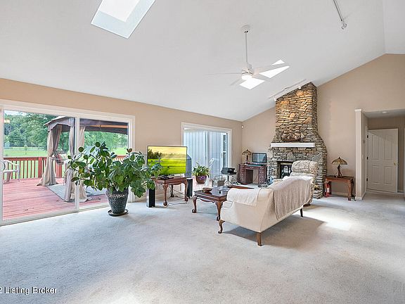 EXCEPTIONAL PRICE REDUCTION! Great opportunity for a spacious home in Cardinal Harbour, shows pride of ownership inside and out. Recently painted exterior, first floor and basement. Updated kitchen offers granite counters updated appliances, refinished hardwood floor, an island and table area with great views and patio door to the deck,, and a pantry! The open plan offers a vaulted great room enhanced by the to the ceiling 2 sided stone hearth, matching the exterior stone, and two sets of patio doors which open out to the large deck. Just a few steps down from the kitchen is the spacious main level family room. The owners suite plus 2 additional bedrooms are on this main floor. The owners bath features a double vanity, jetted tub and separate shower, a walk-in and 2nd closet. There is also a 2nd full bath, "Jack and Jill' style, plus half bath and laundry room on the first floor. The basement offers a large 2nd family room, 2 flex use rooms with large closets, a full bath and storge areas. Outside, refreshed landscaping and a nearly level lot make for easy maintenance. Lots of storage space, attached shed, basement storage, some crawl space storage. Scenic Cardinal Harbour offers so many additional amenities: a private boat ramp, dock, and outdoor area to store your boat, RV, or other large items. ALSO there's a clubhouse, pool, tennis courts, fishing pond, horse barn and fenced pasture! Located in the award winning North Oldham County school district.